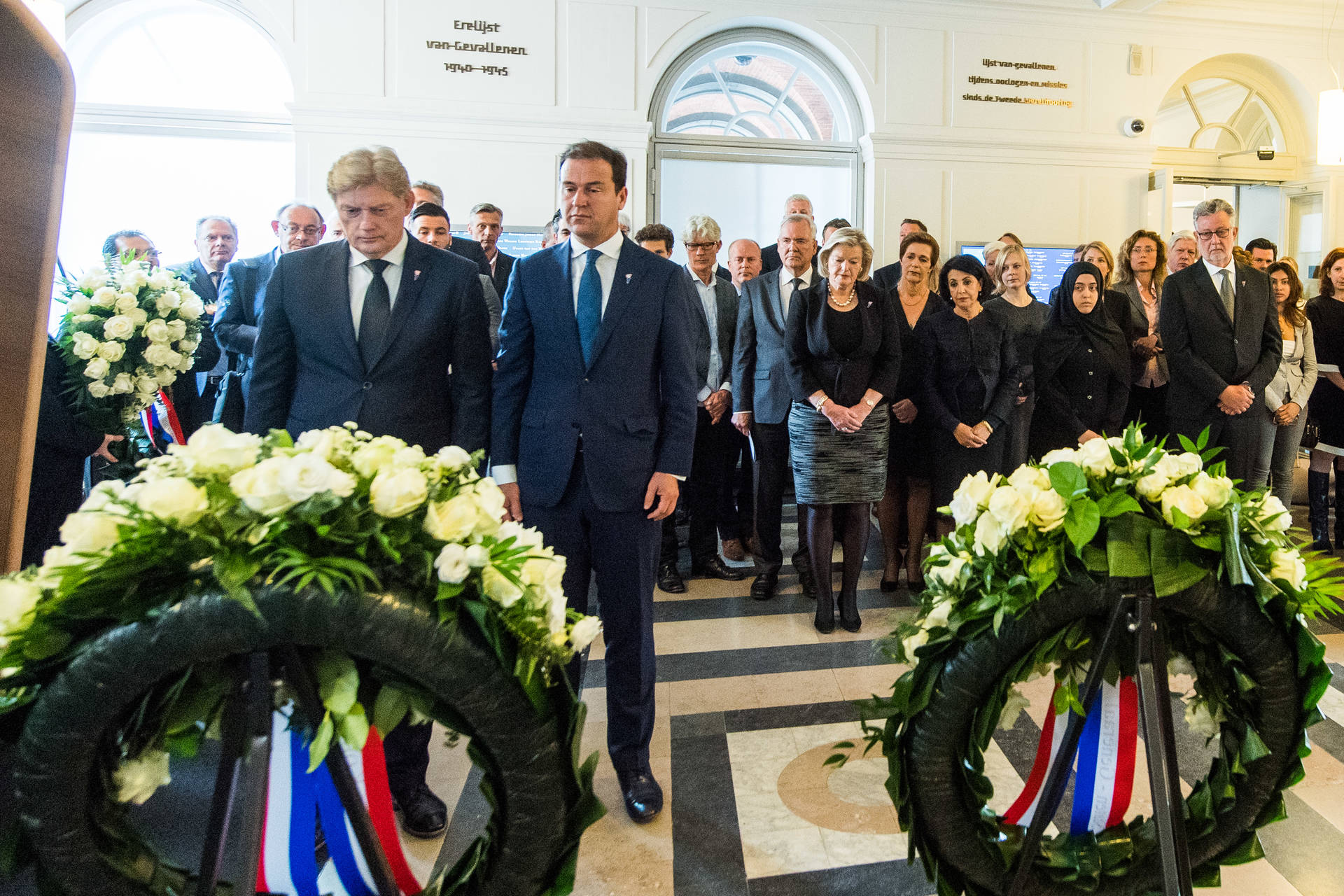 Vervolgens legden de Voorzitters van de Eerste en Tweede Kamer, Ankie Broekers-Knol en Khadija Arib, een krans namens de Staten-Generaal, gevolgd door Vice-premier Lodewijk Asscher en Staatssecretaris Martin Van Rijn van Volksgezondheid, Welzijn en Sport namens de Ministerraad van het Koninkrijk, en de rector en een leerling van de Johan de Witscholengroep namens hun school.