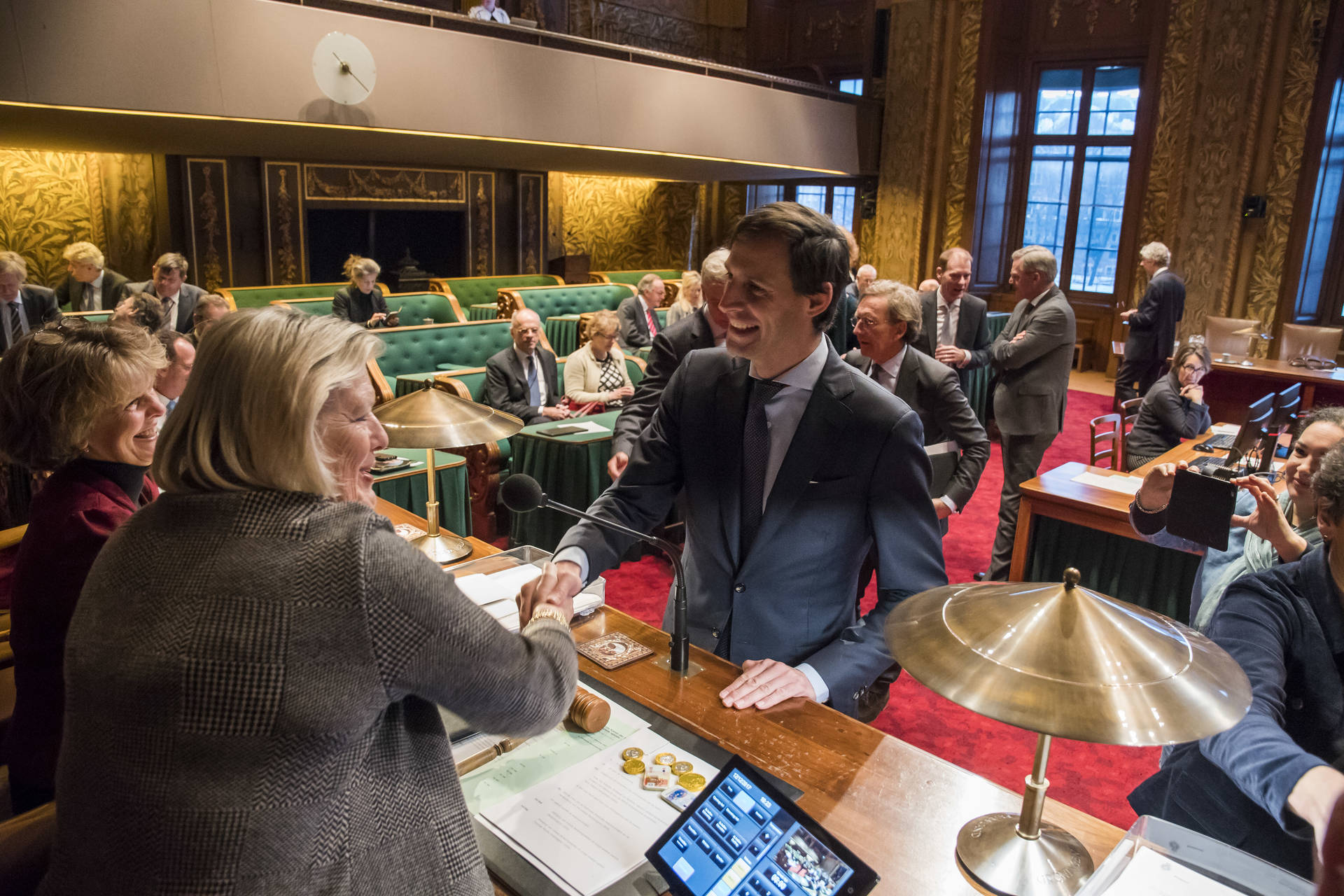 Senator Van Rij (CDA) herbevestigde dat de CDA-fractie dit kabinet positief zal bejegenen en ziet uit naar een constructieve dialoog. Hij sprak zijn waardering uit voor het vorige kabinet en met name de voorganger van deze minister van Financiën die goed op de kas heeft gelet. Van Rij schetste een aantal ontwikkelingen die een impact op de Nederlandse economie kunnen hebben en vroeg om een reactie van de minister. Het betreft de toekomst van de EU, in het bijzonder de Brexit, het America First-beleid en de gevolgen daarvan voor de internationale handel en de technologische veranderingen zoals digitalisering, robotisering, bitcoins en blockchains, en de automatisering.