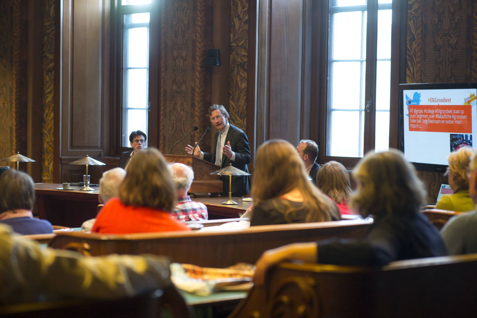 De zes hoorcolleges die de Eerste Kamer zaterdag in samenwerking met het Genootschap jonge historici heeft gehouden in het kader van het GrondwetFestival, hebben veel belangstelling getrokken. Bij alle colleges waren de bankjes waar normaal op de dinsdagse vergaderdag de 75 Eerste Kamerleden zitten allemaal bezet. De colleges werden gegeven door jonge historici, Eerste Kamerleden en Voorzitter en Griffier van de Eerste Kamer. Het publiek in de zaal kon ‘Kamervragen’ stellen, maar ook via Twitter reageren (#EKGrondwet).