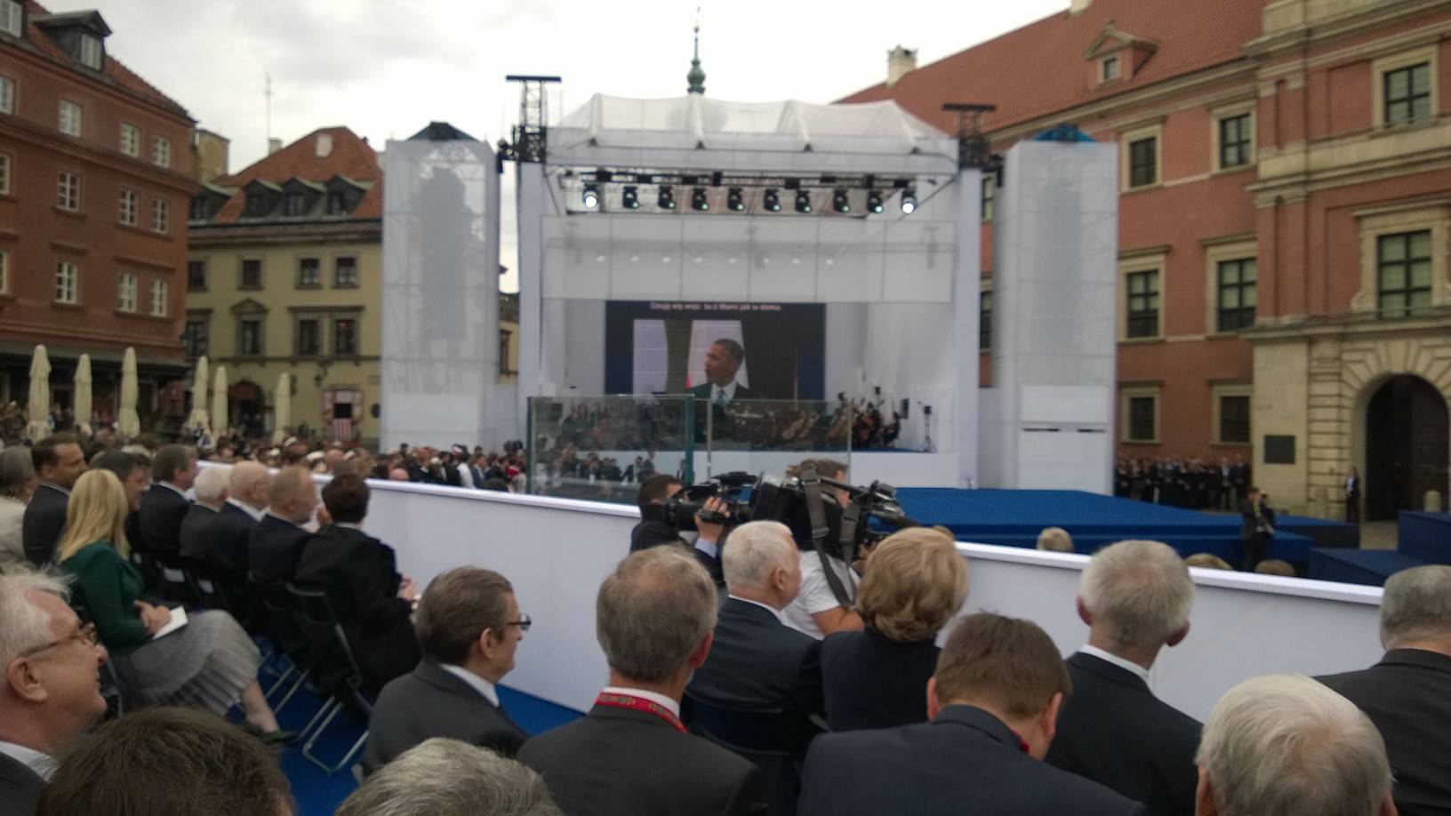 De herdenking op 4 juni 2014 begon met een ceremonie op het Slotplein (Plac Zamkowy) in het centrum van Warschau. Hier hielden President Komorowski en President Obama toespraken.