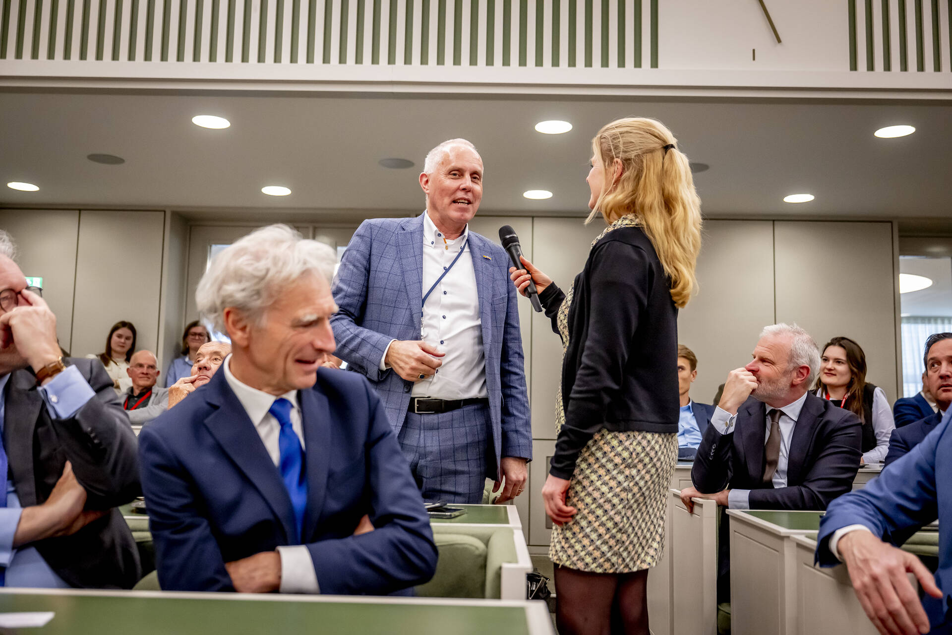 Eerste Kamervoorzitter Jan Anthonie Bruijn reikte het eerste exemplaar uit aan een van de sleutelpersonen van 2024: Eric van der Burg, die als staatssecretaris begin 2024 ‘zijn’ Spreidingswet met vuur verdedigde. Hiermee oogstte hij grote waardering, zowel in de senaat als in het land. ‘Het was hét politieke moment van 2024 in de Eerste Kamer,’ aldus Bruijn.