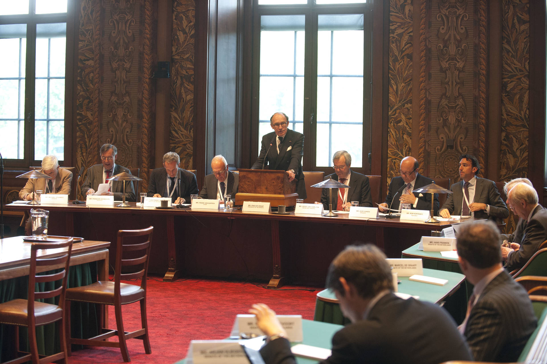 On 16 May 2012 the Senate held a symposium in the plenary hall, titled 'Realities of European Security: reacting to growing uncertainties and waning capabilities'. At this symposium, which was organised by the Standing Committie for Foreign Affairs, Defence and Development Cooperation, the current realities in European security policy were discussed. Several issues such as the future of the Transatlantic Pact and the possibilities of pooling and sharing of military capabilities were brought forward. The central question was to what extent Europe, despite of major cutbacks, succeeds in protecting its vital interests, if at all.
